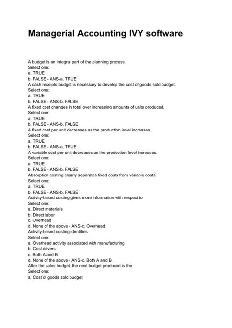 SBO - Free PDF Ivy software test answer for managerial accounting Library Binding Gutenberg